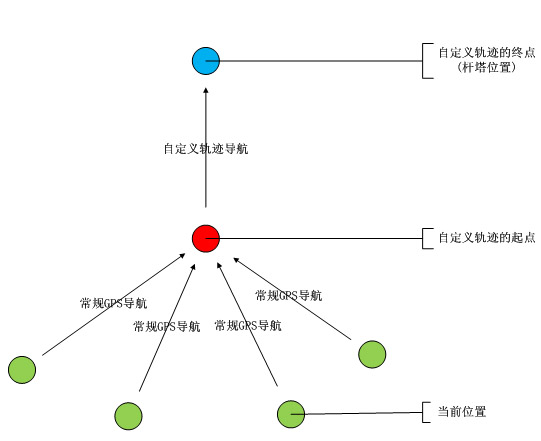 自定義軌跡為用戶自主采集并定義的行進路線,此段路可能不存在于現(xiàn)有的GPS導(dǎo)航引擎,系統(tǒng)可以將自定義路線直接顯示在電子地圖上,并在電子地圖中實時標注用戶的當(dāng)前位置,用戶參照自己的當(dāng)前位置及自定義的軌跡線路行進至桿塔位置。