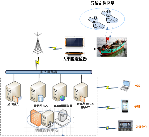 該方案利用船用定位器 /船用短報文定位器/漁船 北斗 定位器的北斗/GPS 雙模定位、通過4G/RDSS進(jìn)行數(shù)據(jù)通信、專有云服務(wù)、大數(shù)據(jù)、衛(wèi)星通信技術(shù)相結(jié)合,實時、在線監(jiān)控船舶的實時動態(tài)相關(guān)信息,并通過運(yùn)營商4G網(wǎng)絡(luò)將船舶位置信息、軌跡、設(shè)備電量情況、SOS報警、船舶傾覆程度、設(shè)備是否被拆卸、船舶越界狀態(tài)等數(shù)據(jù)回傳至后臺服務(wù)器,服務(wù)器收到回傳數(shù)據(jù)后在WEB端平臺和手機(jī)端平臺進(jìn)行展示,讓管理機(jī)構(gòu)和使用者實現(xiàn)隨時隨地監(jiān)管 的目標(biāo)。
