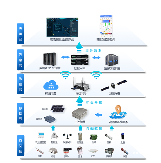 該方案利用北斗 形變監(jiān)測設(shè)備的北斗高精度差分定位、多傳感器融合技術(shù),專有云服務(wù)、移動(dòng)通信、衛(wèi)星通信技術(shù)、大數(shù)據(jù)及人工智能等技術(shù)相結(jié)合,實(shí)時(shí)、在線、可視化反饋監(jiān)測樓房、橋梁、桿塔以及邊坡等監(jiān)測體的變化情況,為形變預(yù)警分析提供決策依據(jù)和參考,以達(dá)到在最短的時(shí)間預(yù)警、報(bào)警的功能。